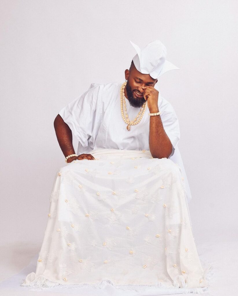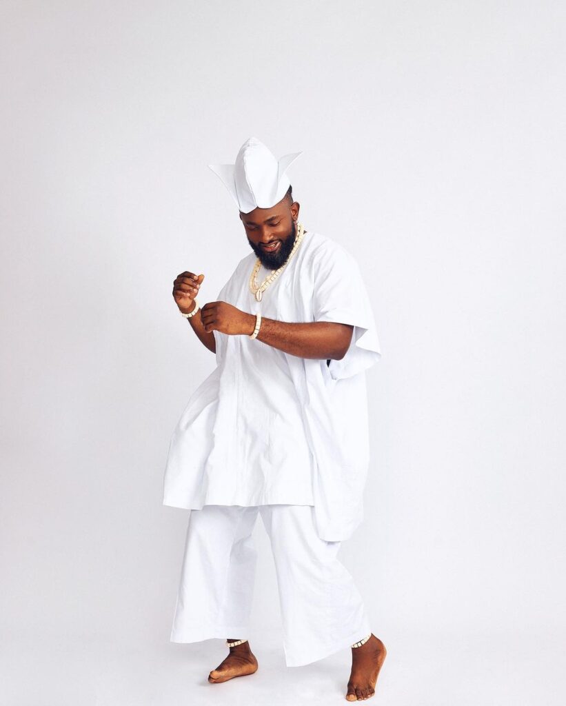 In the captivating photos, the talented actor and TV presenter from Delta state donned a Yoruba traditional attire, resembling the attire worn by Ifa priests in the South-west region of Nigeria.