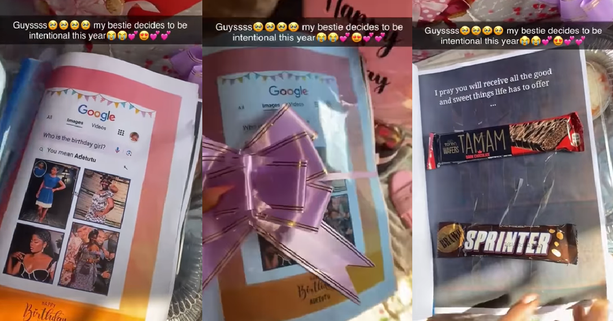 [ad_1] Netizens were impressed and touched by the video a woman posted of the thoughtful gifts her best friend had given her on her birthday. In the video, the lady @royaldee_events showed off what looked like a book that had been wrapped with a pink ribbon. The book was custom-madeContinue Reading