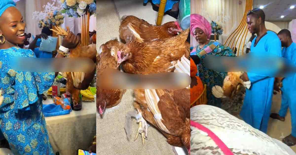 [ad_1] The mother of a Nigerian groom has set the bar high for future mothers-in-law after sharing a live chicken during her son’s wedding ceremony. A video posted by @adedoyinfilms_ displayed some party guests’ excitement and cheers after receiving the surprising souevnir. The party radiating elegance recorded the guests dressedContinue Reading