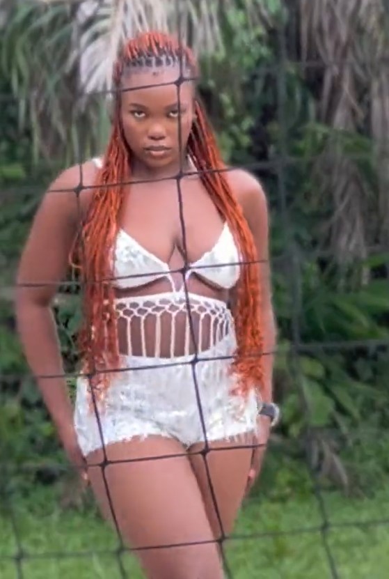 The video vixen who was recorded posing for pictures and videos was wearing a shiny short and a revealing crop top.