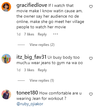 “Na jean your mates Dey wear go gym” – Ruby Orjiakor comes under fire her outfit to the gym