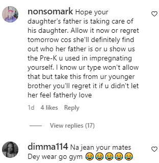 Prince commented; “You dey wear aba jeans dey workout ..the truth is that ur over sabi no dey gree you coordinate yourself …”