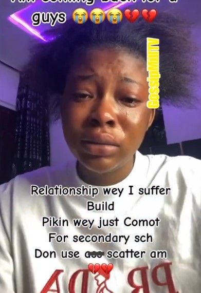 “Relationship wey I suffer build, pikin wey just commot for secondary school don use ass carry am,” she captioned the video.